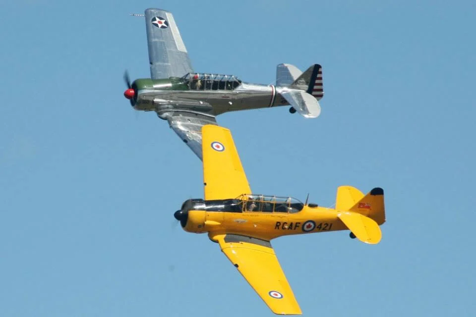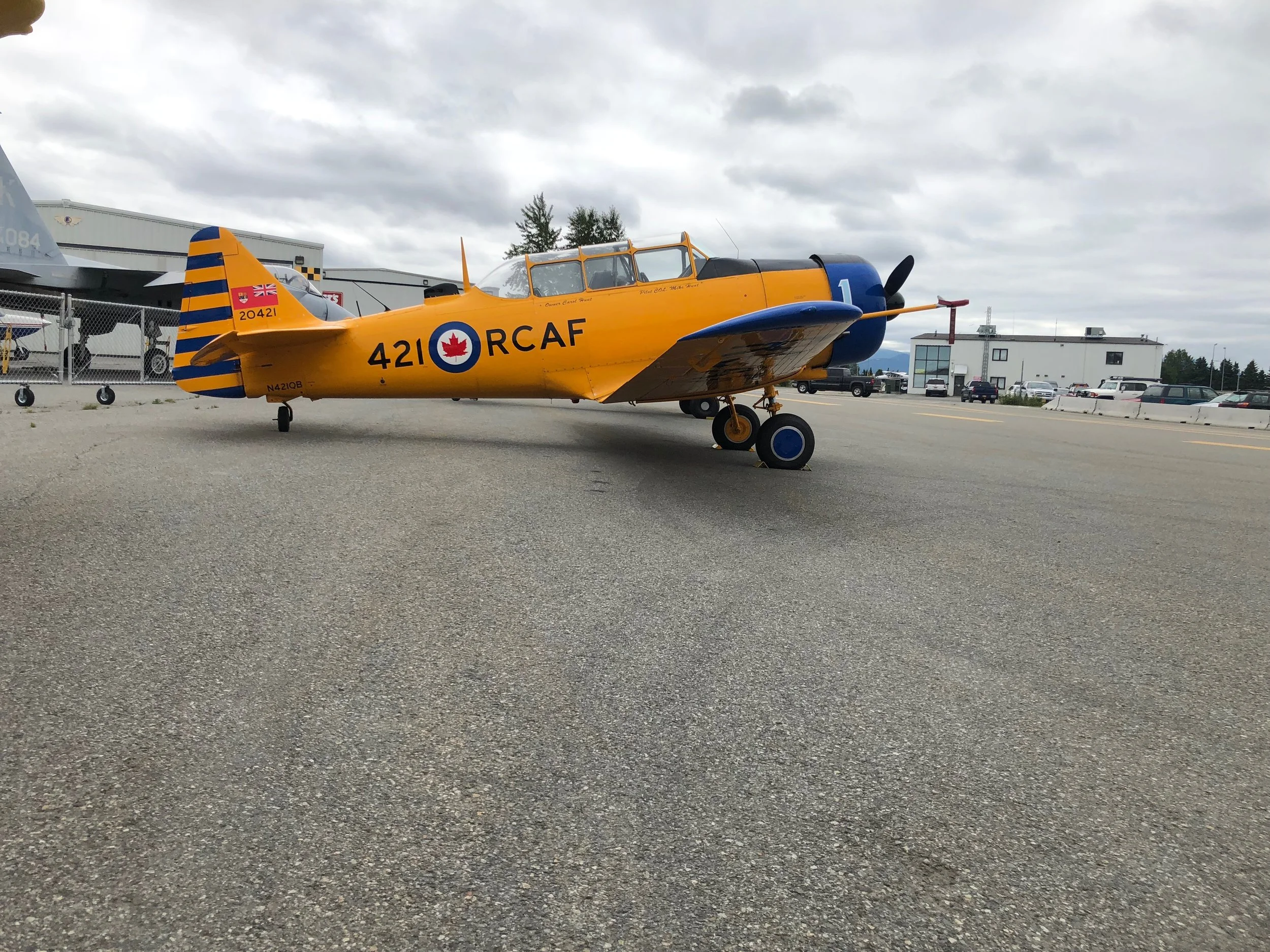 The T-6 family is one of the most recognizable warbirds of World War II. CAF Alaska Wing is honored to be charged with flying our Harvard in its distinctive RCAF markings. Her striking livery serves as a nod to her time as "Goldilocks #1", the lead aircraft for the RCAF Goldilocks aerial display team.